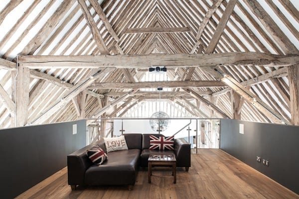 Burstead Barn conversion is an incredibly modern design that incorporates a traditional timber barn structure with a chic interior style. The design involved the installation of two modern pod structures within a triple-floor barn space to enable the habitation of a growing family.